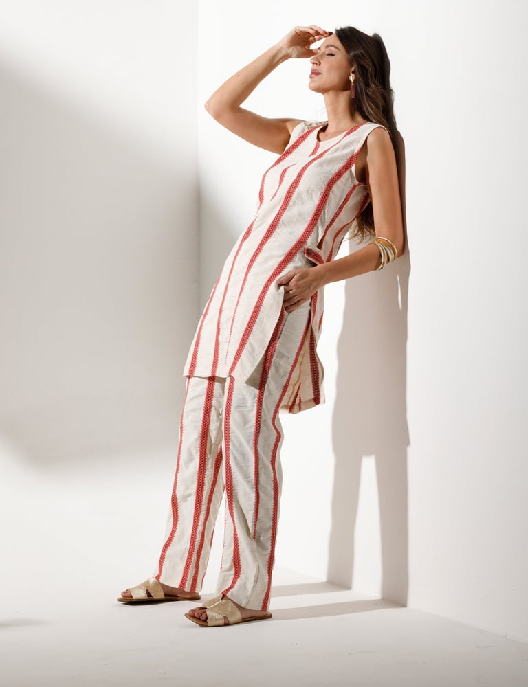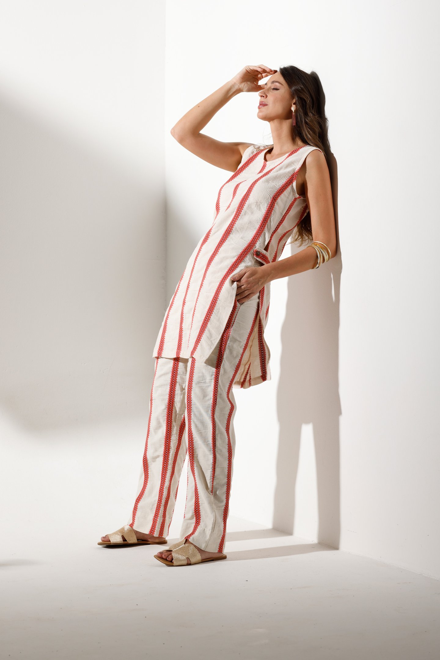 Cada coleção nasce de um processo profundo e artesanal, onde estética e essência se encontram. As peças são pensadas com intenção: da escolha das matérias-primas conscientes ao desenho dos cortes que acompanham o corpo com leveza. Trabalhamos com fibras naturais e tecidos de menor impacto ambiental, priorizando o conforto sensorial, a durabilidade e o respeito à cadeia produtiva.