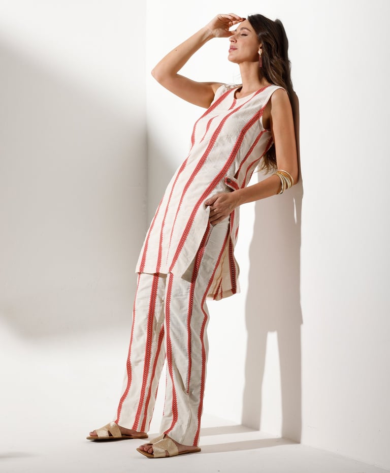 Cada coleção nasce de um processo profundo e artesanal, onde estética e essência se encontram. As peças são pensadas com intenção: da escolha das matérias-primas conscientes ao desenho dos cortes que acompanham o corpo com leveza. Trabalhamos com fibras naturais e tecidos de menor impacto ambiental, priorizando o conforto sensorial, a durabilidade e o respeito à cadeia produtiva.